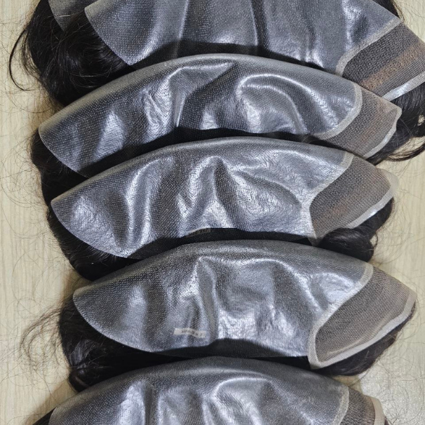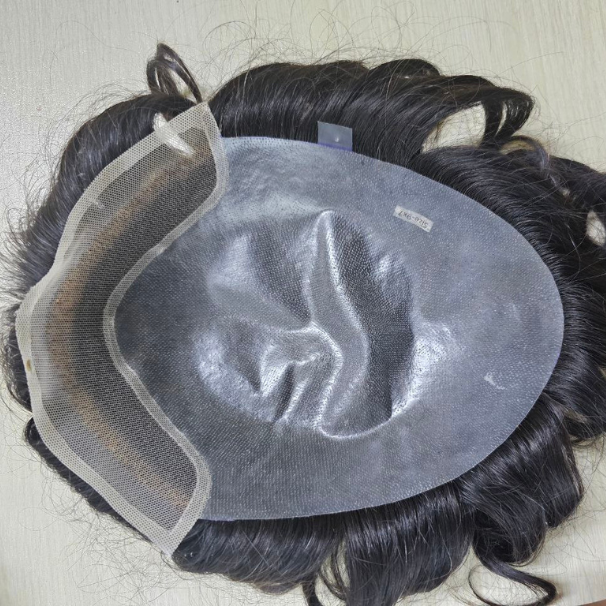 Perruque Lace Front BIO pour Homme, Cheveux Indiens Remy Vierges de 6 pouces, Dentelle Française de 1 pouce, Dos en PU 8x10 pouces, Densité 100-130%, Lisse 0.02-0.10 mm
