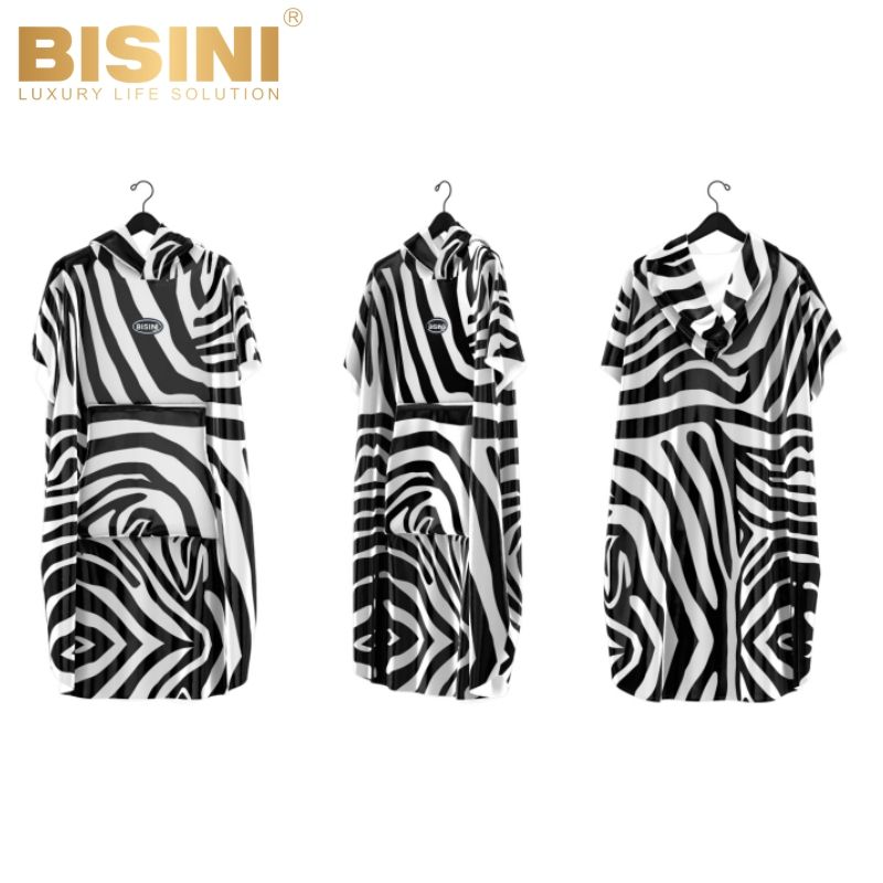 BISINI série d'impression Logo personnalisé motif imprimé zèbre 3 en 1 compressible Robe à langer sac de rangement polyvalent serviette de plage