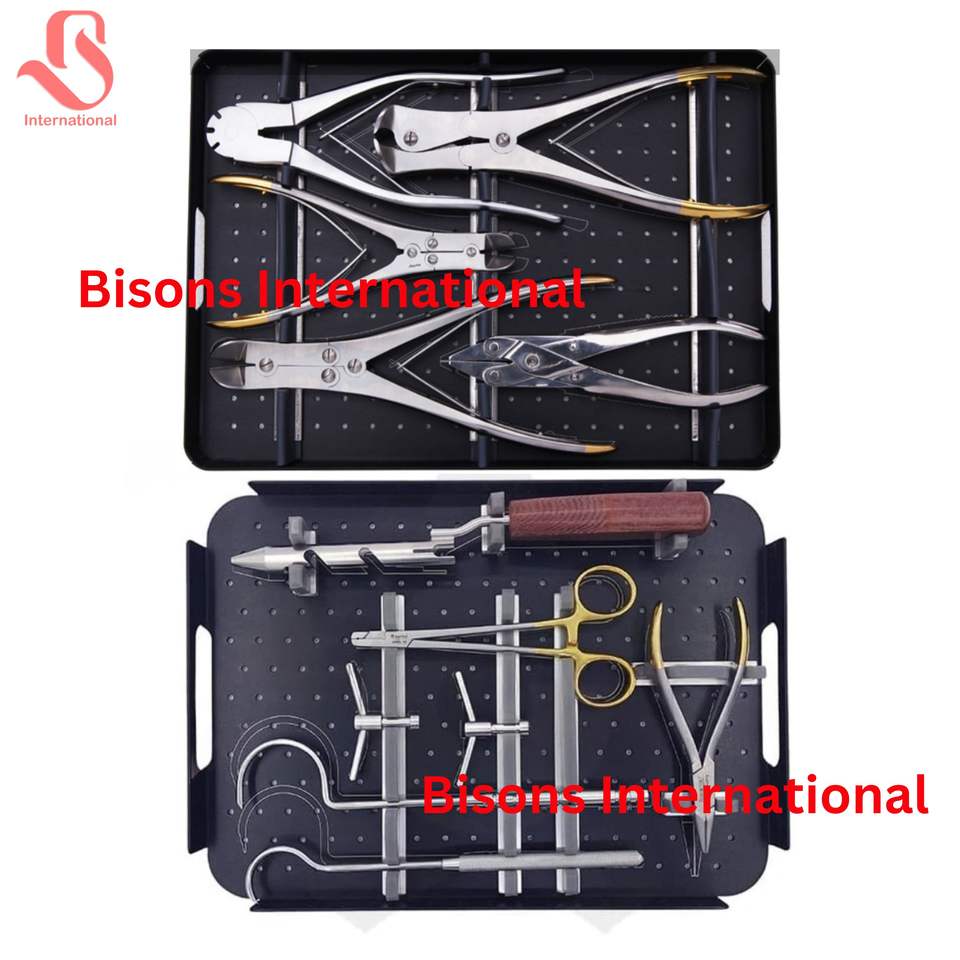 BISONS WHOLESALE Ensemble d'instruments orthopédiques en acier inoxydable avec boîte de stérilisation | Tenseur, coupeur et plieur de fils K chirurgical