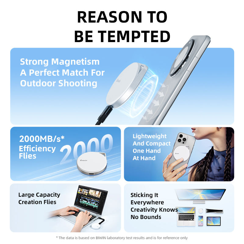 BIWIN Portable Solid State Drive Haute Vitesse de Lecture Petite Interface USB Magnétique 512 Go et 1 To Nouveaux Produits