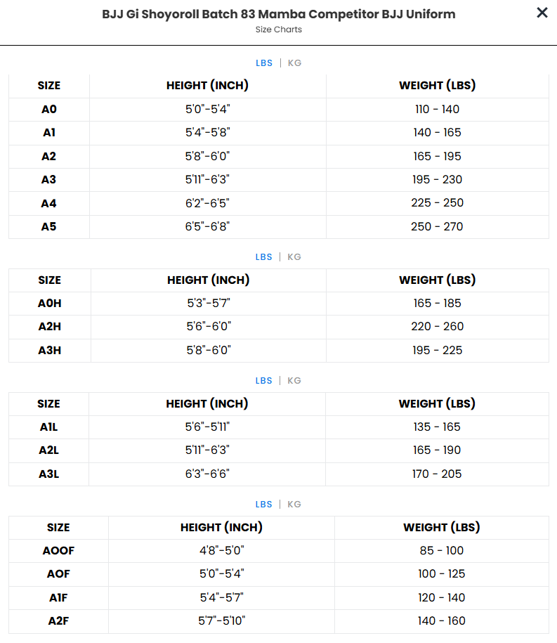 Nom du produit:Kimono de JJB Shoyoroll Lot 83 Mamba Competitor