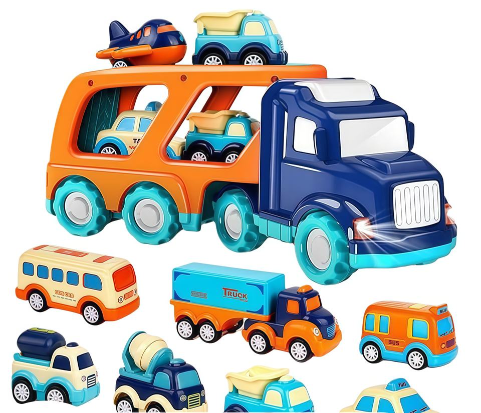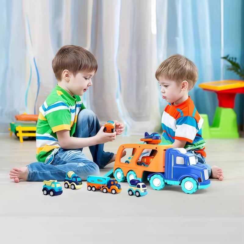 BJQ OEM Jouets de voitures à friction en plastique, dessin animé, pour tout-petits, garçons et filles, grand transport avec véhicules assortis, ensemble de jeu, camion transporteur