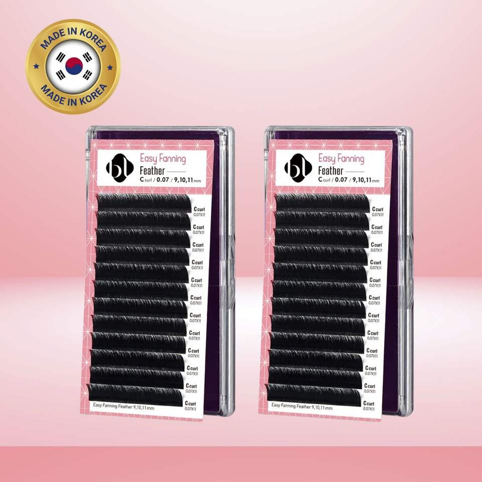 [BL Lashes] Extensions de cils Easy Fanning Premium Corée PBT Mix (Courbures B, C, D, J) (0.07~0.13mm) Doux et Naturels