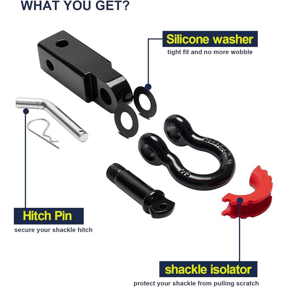 NOIR 2 pouces attelage broche récepteur D anneau manille robuste solide 3/4 ''manille support camion remorquage accessoires attelage récepteur