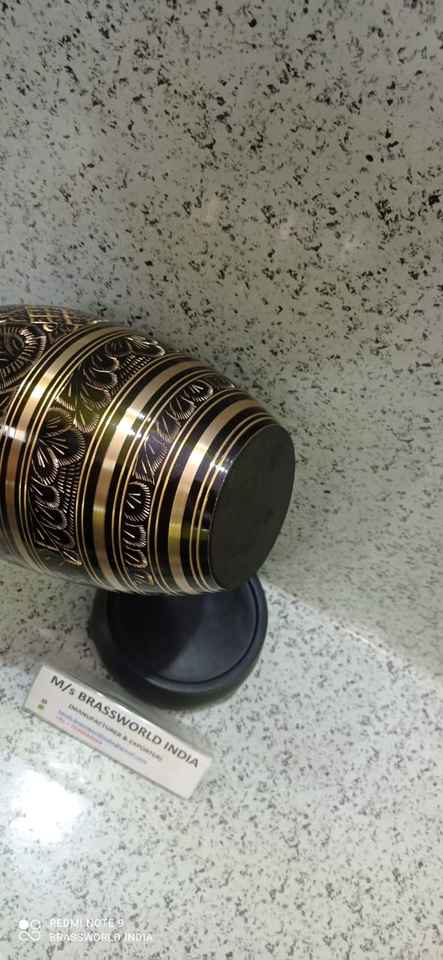 Urne funéraire en métal gravée noire et dorée pour adultes, style américain, BRASSWORLD INDIA FUNERAL SUPPLIES