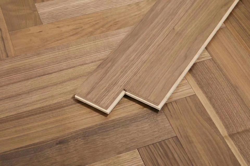 Parquet en noyer noir Chevron Fish Bone, parquet en bois d'ingénierie, parquet en bois à chevrons pour la maison