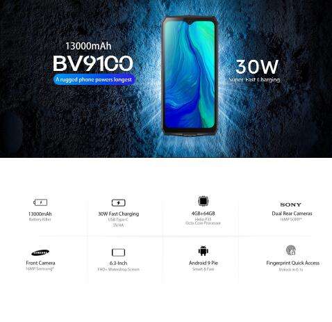 BLACKVIEW — Smartphone BV9100 débloqué, téléphone portable, 4 go de ram, 64 go de rom, double appareil robuste, batterie plus grande, écran étanche IP68