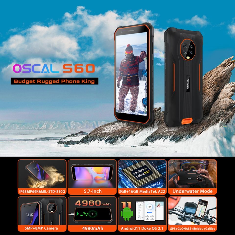 BLACKVIEW OSCAL S60 Android 11 Téléphones 3 Go de RAM 16 Go de ROM Écran 5,7 pouces 4G LTE Téléphones robustes et étanches IP68
