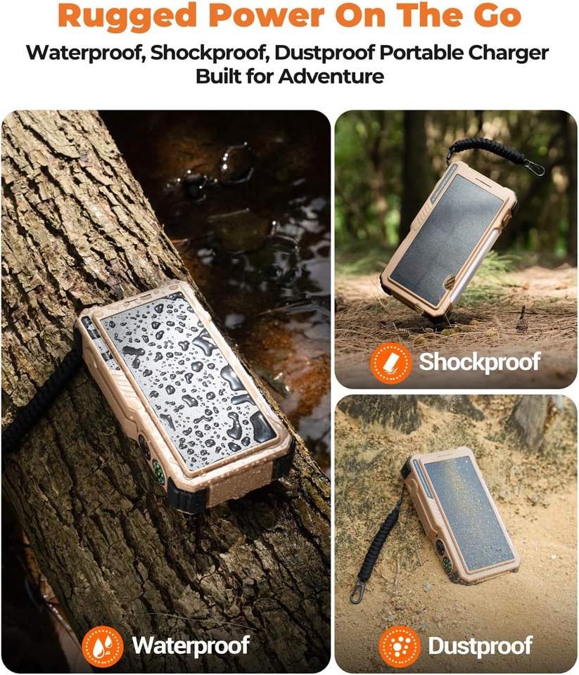 Batterie portable solaire, 2 en 1 chargeur rapide batterie externe, Charge rapide, Haute Capacité, Chargeur sans fil, ImperméableType