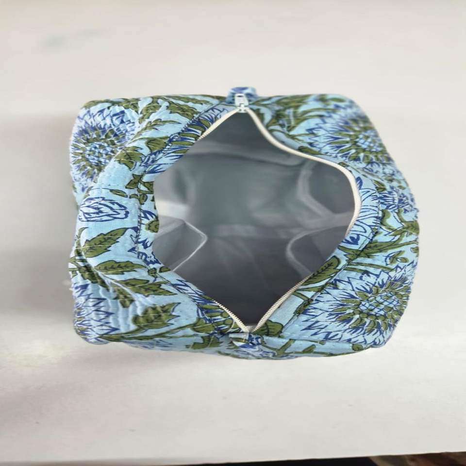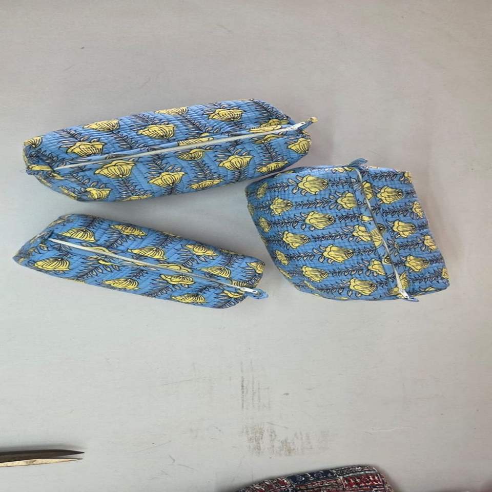 Ensemble de 3 trousses de toilette et de maquillage multifonctionnelles pliables en coton 100% matelassé BLOCKPRINT ART, écologiques et durables