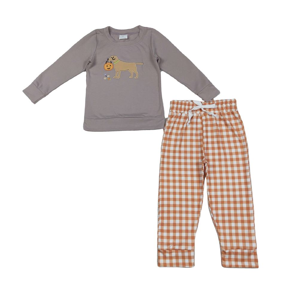BLP1098 Little Boy Boutique Halloween Puppy pumpkin light Embroidery Long Sleeve Fall Outfits Children's Clothing Set Wholesale