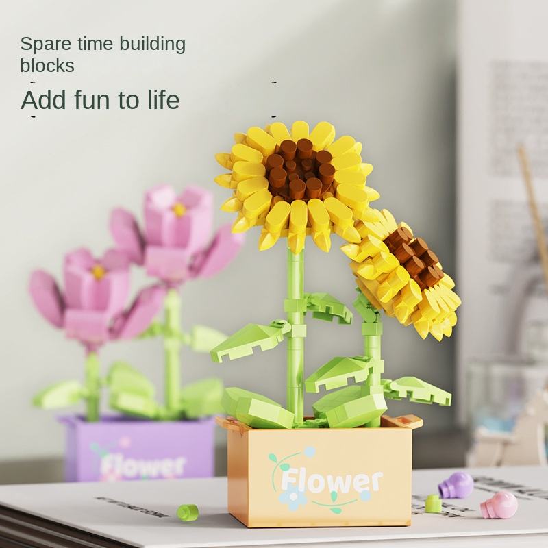 Blocs de construction à injection BLUE DIAMOND, panier de fleurs préservées, ornements, bouquet de roses, jouets éducatifs d'assemblage pour enfants, filles