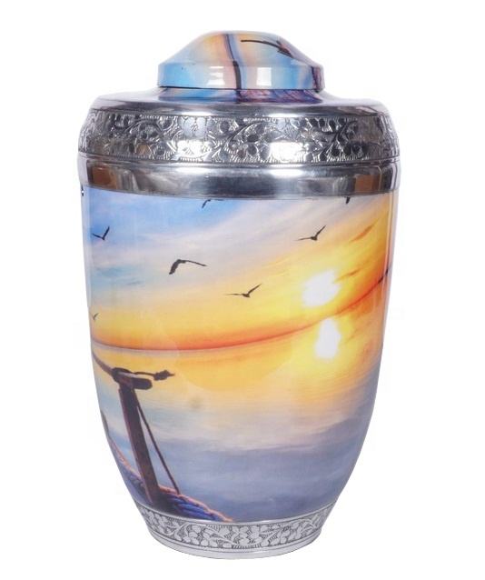 BLUE NATURES PEACE URNE DE CRÉMATION ADULTE Mémorial en métal de style européen avec finition colorée pour les cendres