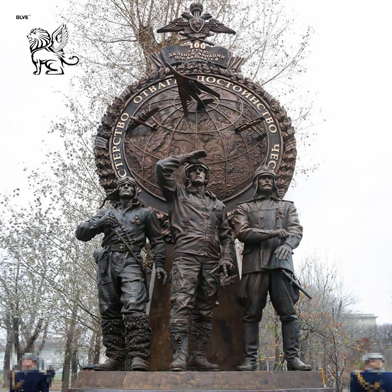 BLVE Sculpture Monumentale Géante en Métal pour Extérieur Urbain, Statue de Guerrier Soviétique en Bronze Agé à Genoux, Héroïque Combattant