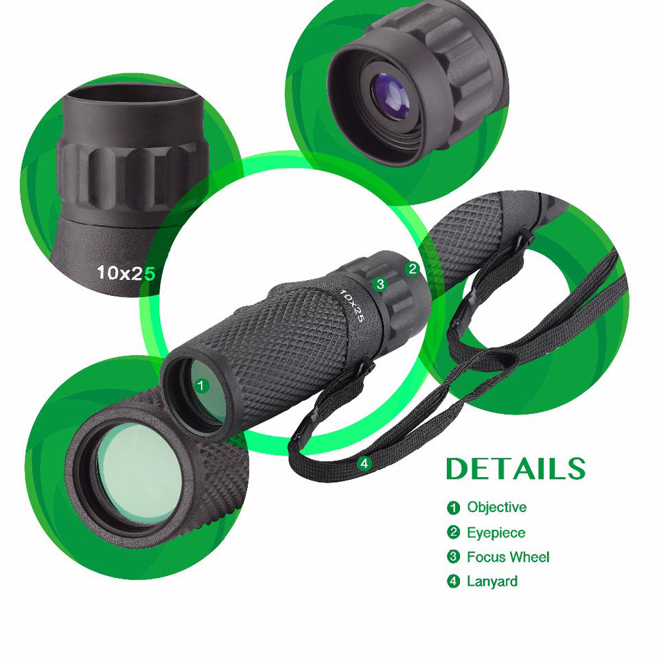(BM-1036) Jumelles de poche haute puissance 10x25 étanches pour l'extérieur, longue portée 1000 m, grand angle, vision HD professionnelle, noires