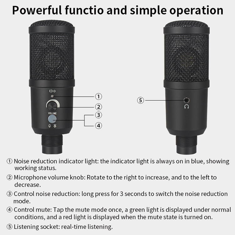 Léger, Microphone à condensateur, Avec LED lumièresFonction