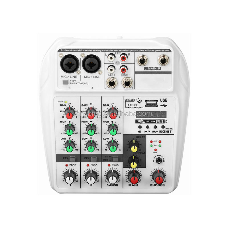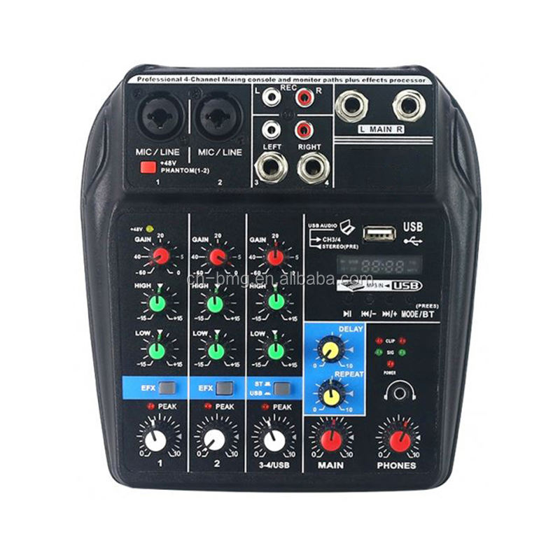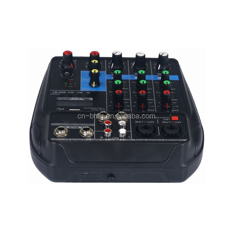 BMG Nouveau Mini Console de Mixage Audio Portable 4 Canaux avec Enregistrement BT, Alimentation Phantom 48V et Effet DSP