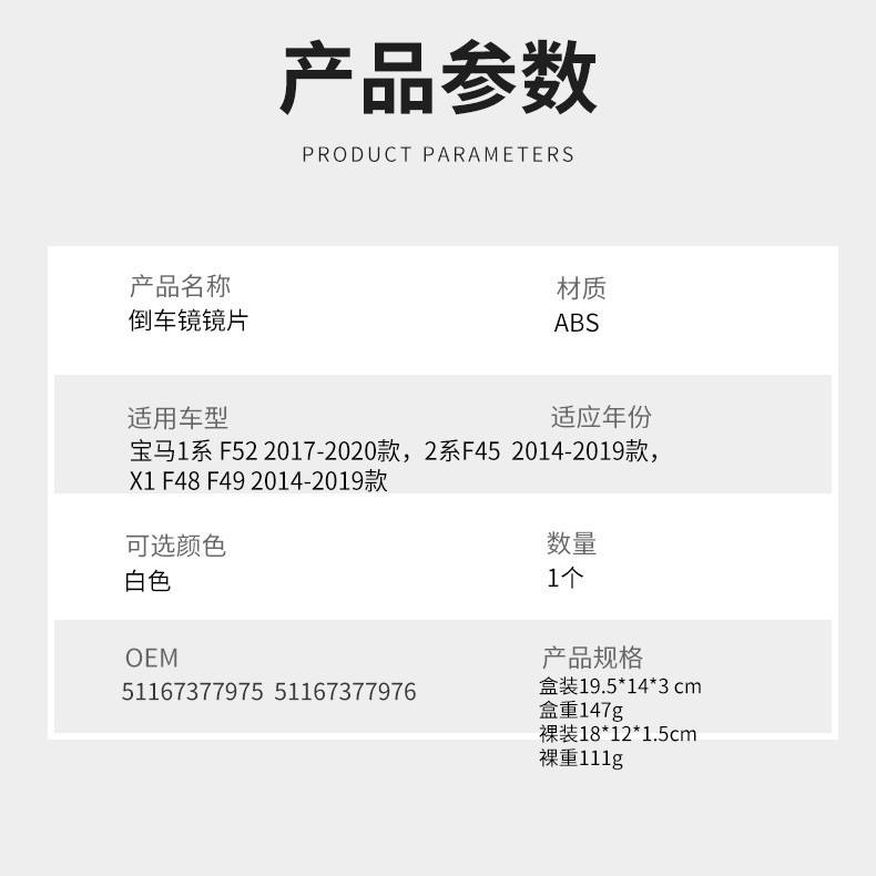 Applicable to 2014-2019 BMW 1 Series, 2 Series, X1, F52, F45, F48, F49Applicable models