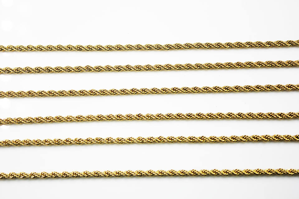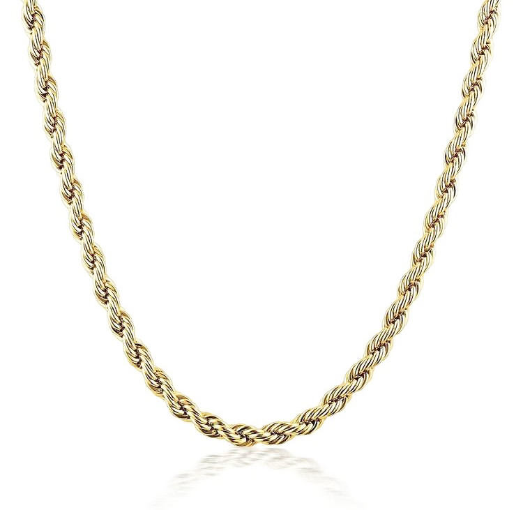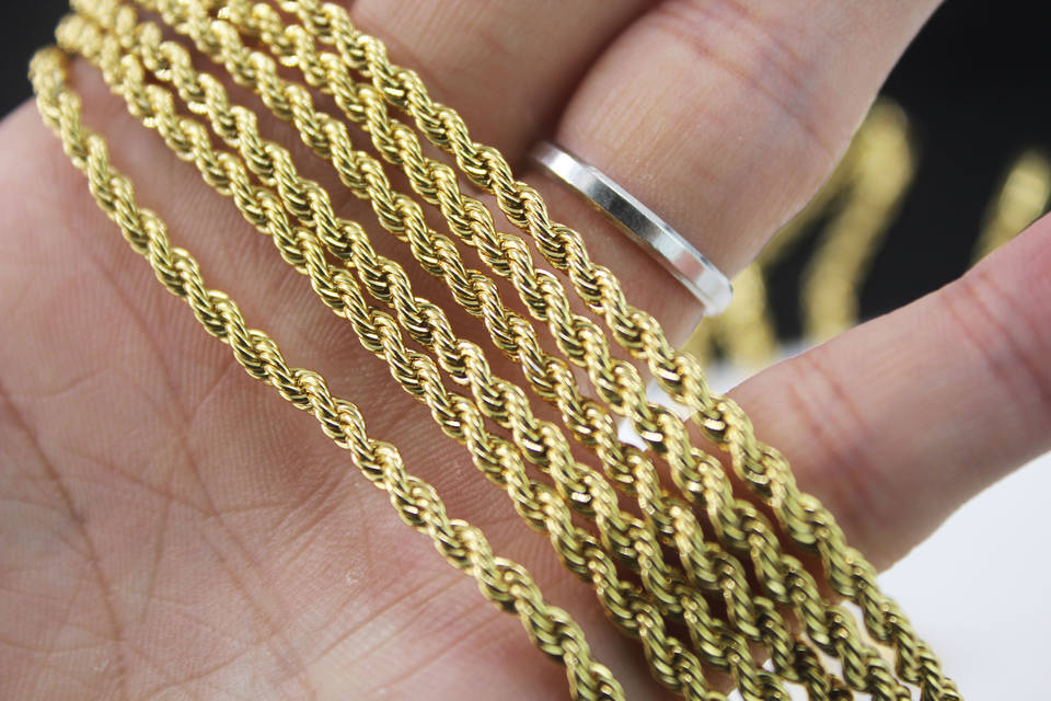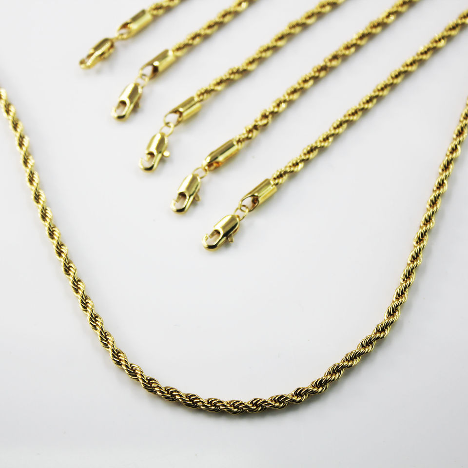 Chaîne en or véritable plaqué or ionique BMZ 18 carats 50/60 cm*0,3/0,4/0,5/0,6 cm Chaîne en corde de la meilleure qualité Garantie 2 ans Chaînes en or en forme de corde