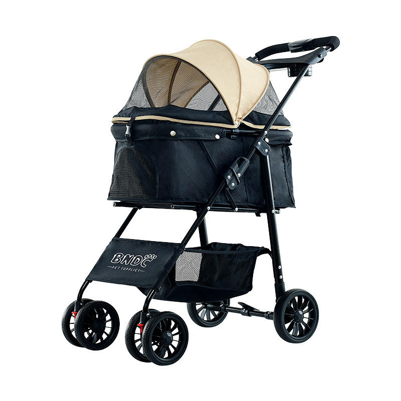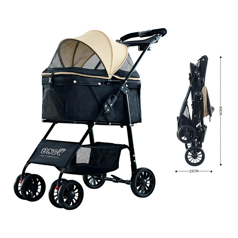 Poussette pliable BNDC pour animaux de compagnie avec intérieur spacieux, rétraction à une touche et roues multi-terrain pour petits animaux de compagnie