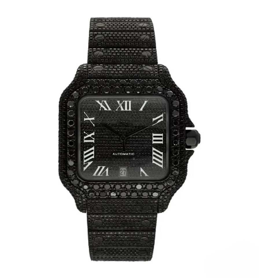 Montre automatique BOJ CATie.R014 entièrement noire, avec diamants romains VVS, verre luxueux, acier inoxydable, entièrement sertie de moissanite, mouvement automatique, 41 mm