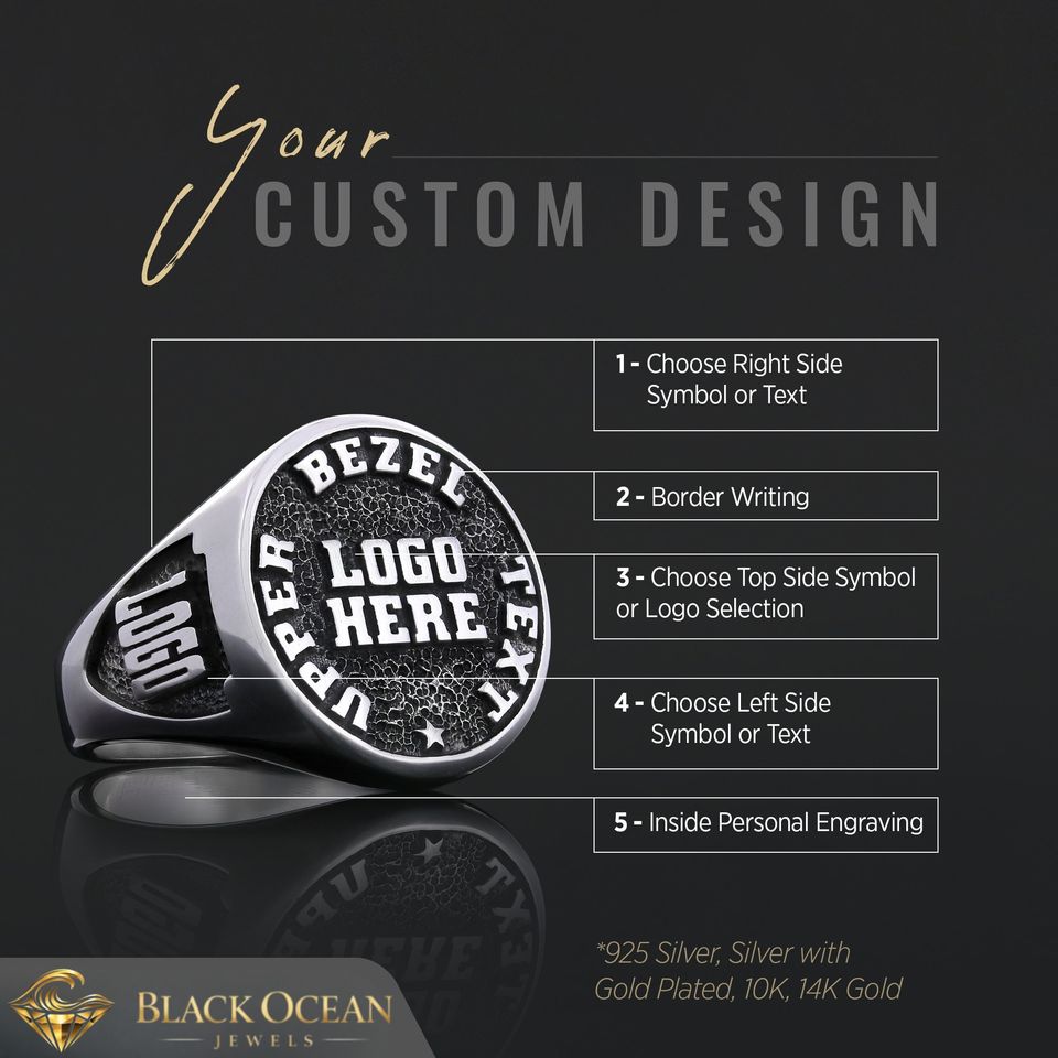 Bague personnalisée BOJ 029, gravée avec votre nom et vos logos sur mesure, faite à la main en argent 925 plaqué or, design unique, prix bas, en solde