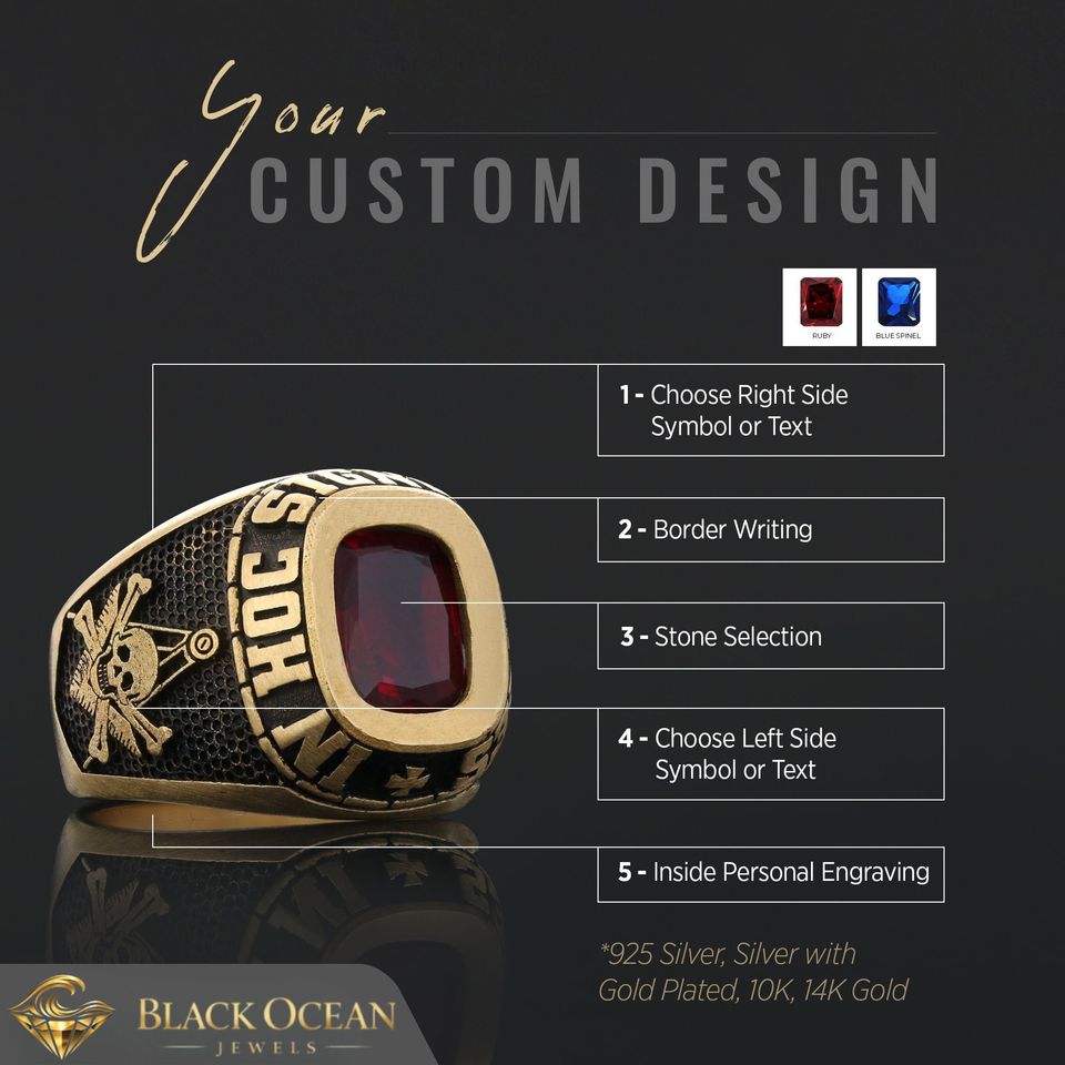 Bague Maçonnique BOJ 047 Personnalisée en Argent et Diamant, Bague de Diplôme Universitaire Unisexe, Cadeau pour Fêtes et Occasions Spéciales, Prix Bas
