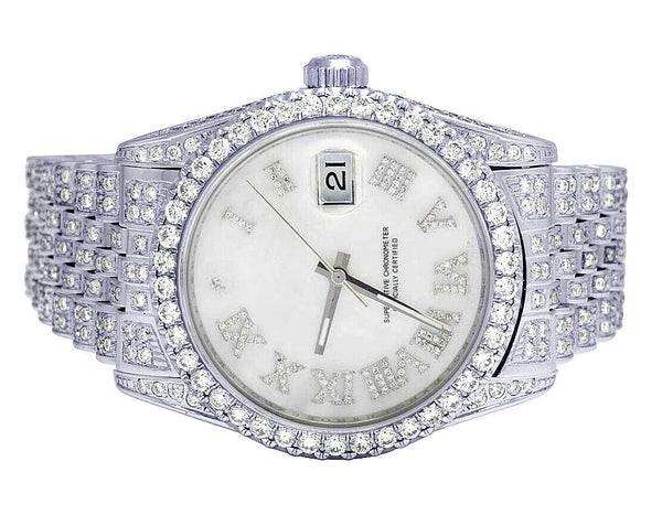 BOJ R.O.L.E.X.018 Montre Homme de Luxe à Quartz Analogique en Acier, Chiffres Romains, Moissanite Intégrale, 41MM, Résistance à l'Eau 3BAR, Style Hip Hop