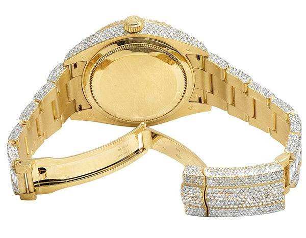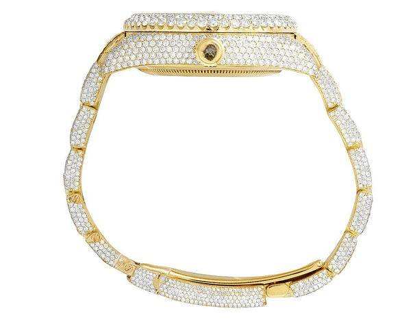 BOJ R.O.L.E.X.049 Montre HipHop de luxe en acier plaqué or jaune, entièrement sertie de moissanite, mouvement à quartz analogique, 41MM, résistance à l'eau 3BAR