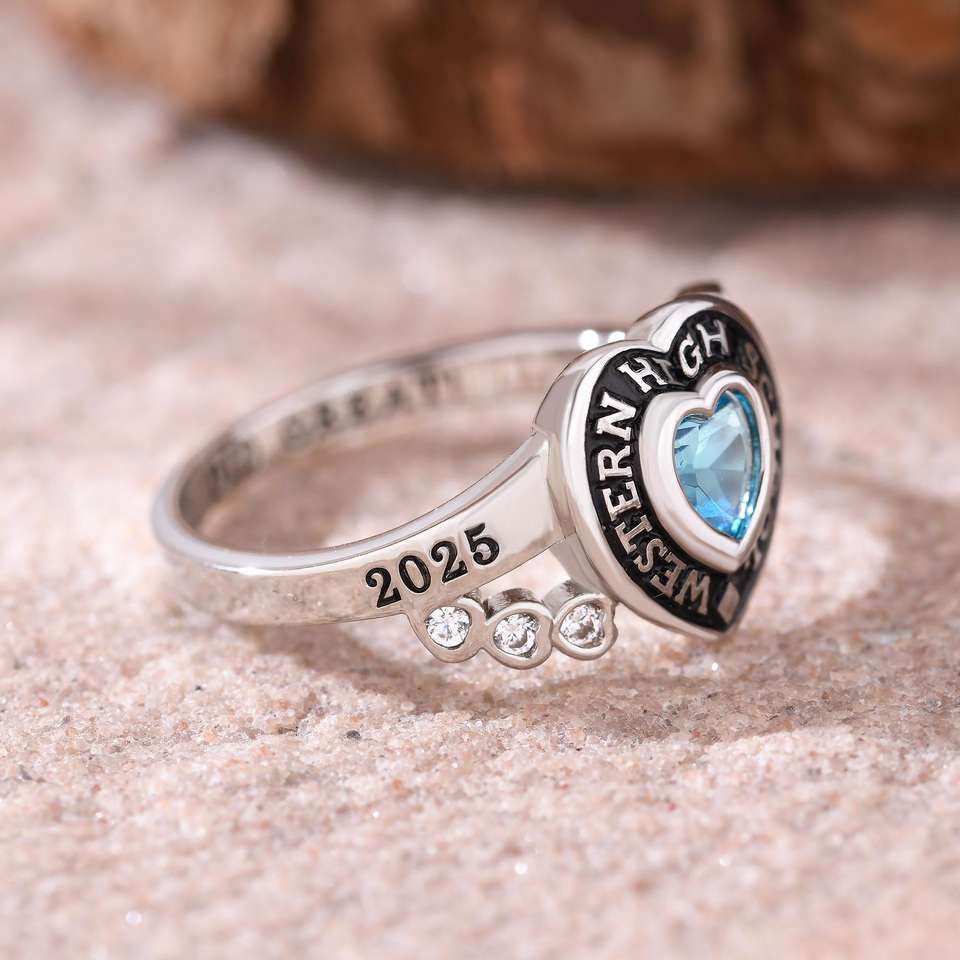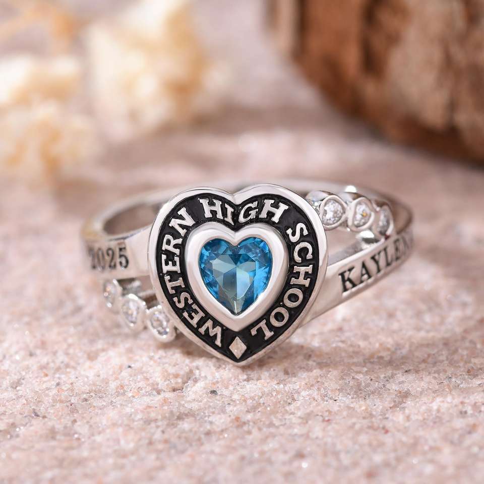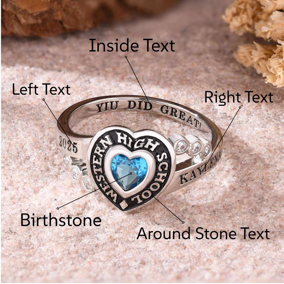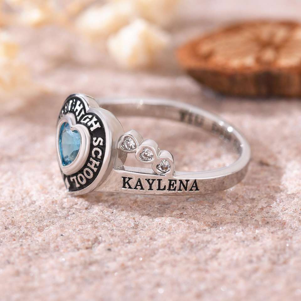 Bague d'École BOJ 058 Personnalisée sur Mesure pour Diplômé Universitaire, Bague de Fin d'Études Secondaires ou Universitaires pour Femme avec Pierre de Naissance en Argent 925 – Nouveauté Tendance