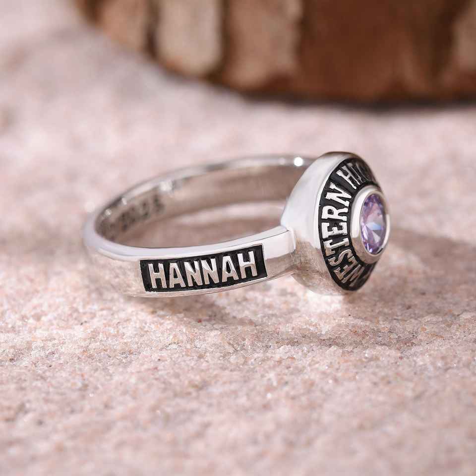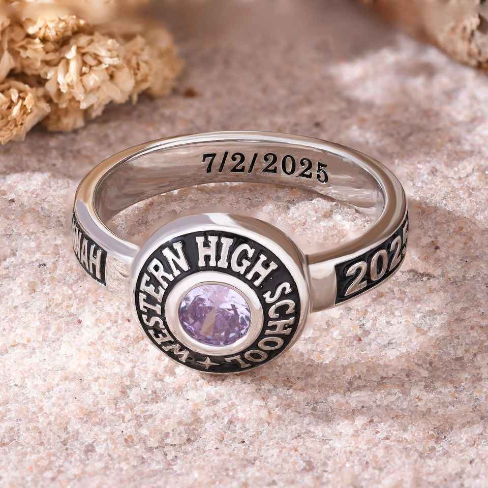 Bague d'École BOJ 075 Personnalisée sur Mesure pour Diplômé Universitaire, Bague de Fin d'Études Secondaires ou Universitaires pour Femme avec Pierre de Naissance en Argent 925 – Nouveauté Tendance