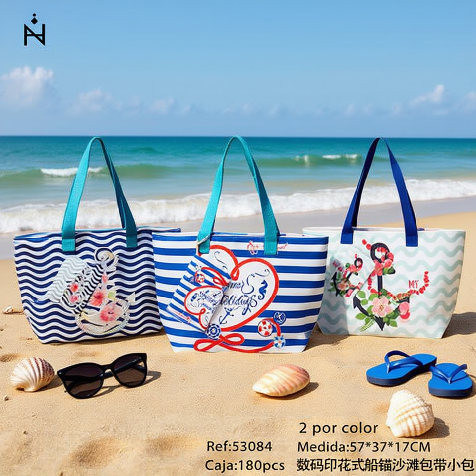 Sac de plage BOLSOS à imprimé numérique Anchor 57x37x17CM avec petite pochette pour femmes, utilisation estivale