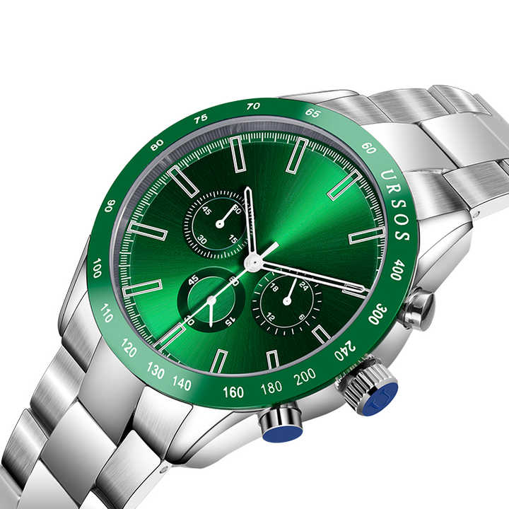 Dispositif:Chronographe, Jour/date, Phase de lune, Non spécifié, Résistant à l'eau, Imperméable, Lumineux, Semaine Affichage, Lumineux Mains, Résistant aux chocs, Évider, Petit de trois aiguilles
