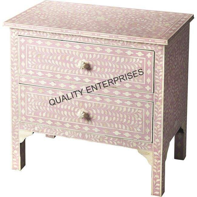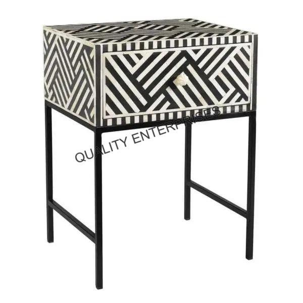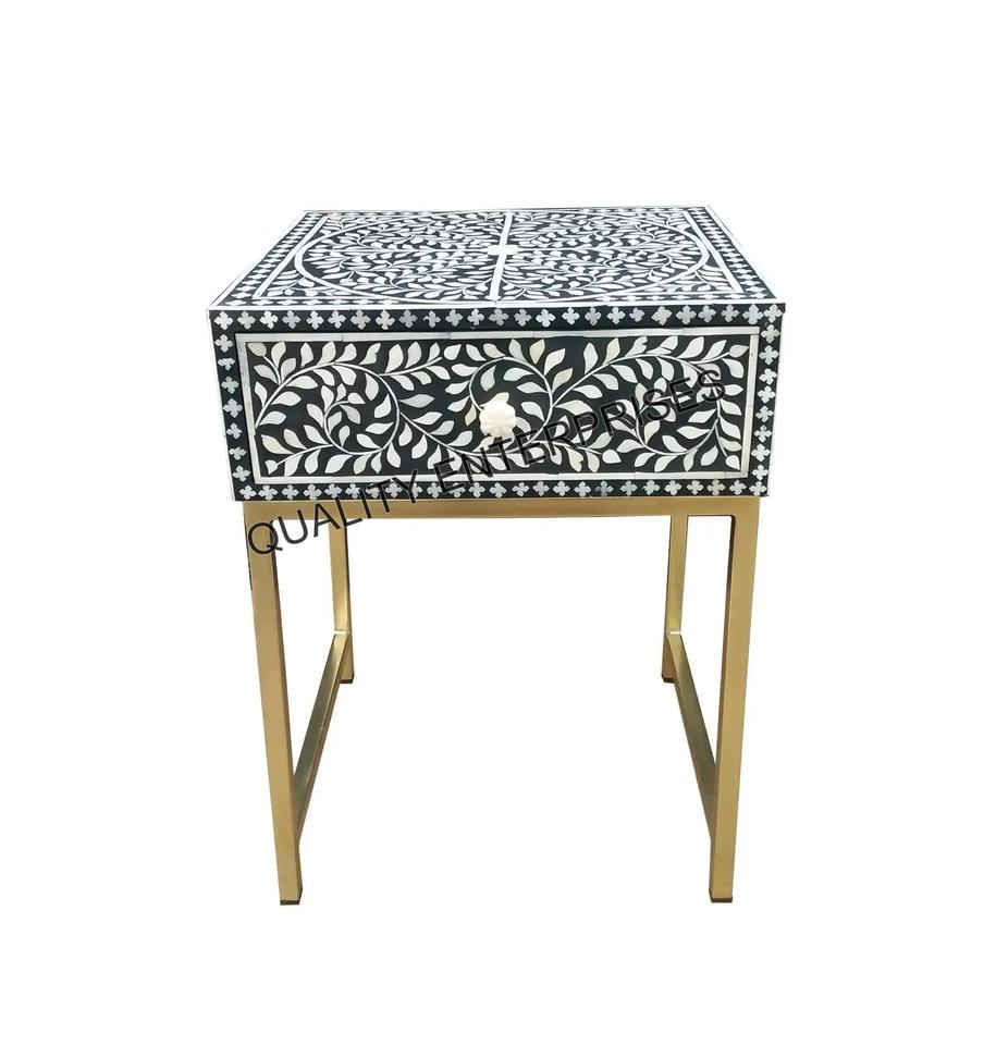 Table de chevet en incrustation d'os, design moderne, fabrication artisanale, haute qualité et écologique, décoration d'intérieur