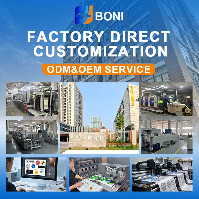 Autocollants en PVC PP vinyle imperméables et résistants à l'huile personnalisés BONI, autocollants de logo de marque, étiquettes en feuilles et en rouleaux pour l'emballage