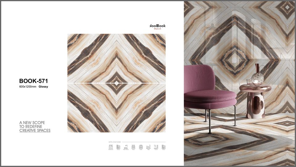 Carreaux de porcelaine émaillée design Bookmatch modernes pour villas, centres commerciaux et écoles - Book 571