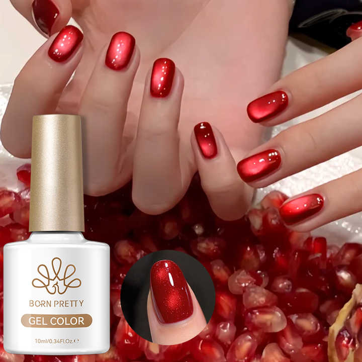 BORN PRETTY 10ml Vernis Gel Magnétique Effet Œil de Chat Rouge Perles de Verre Scintillantes Soak Off UV LED pour Salon Ongles Cristal Rouge