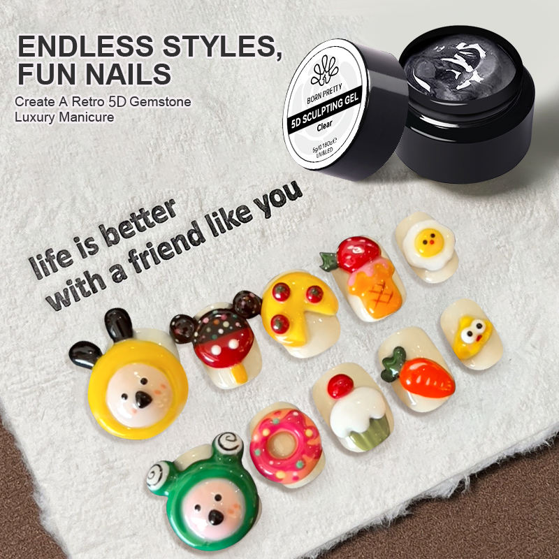 BORN PRETTY personnalisé 5ml 3D sculpté argile à modeler Gel Nail Art antiadhésif main solide 4d sculpture Gel pour ongles manucure