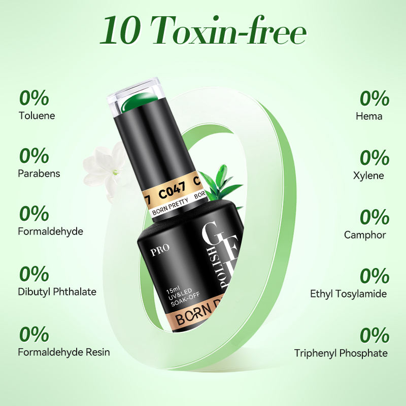 Sans HEMA, non testé sur les animaux, végan, sans 11 substances toxiques
