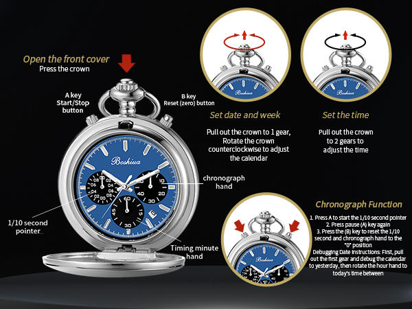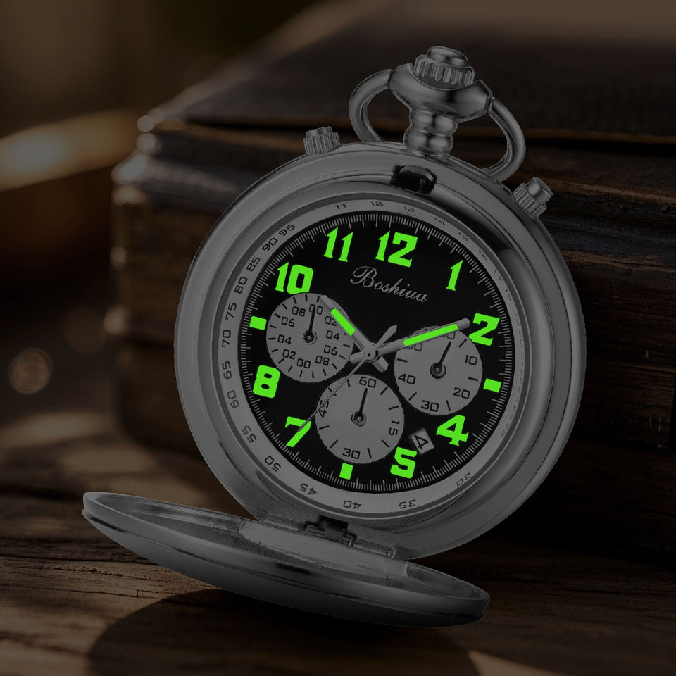 BOSHIYA montre de poche à Quartz moderne pour hommes chronomètre à Six broches à trois yeux phase de lune boîtier lisse or noir calendrier cadran affichage