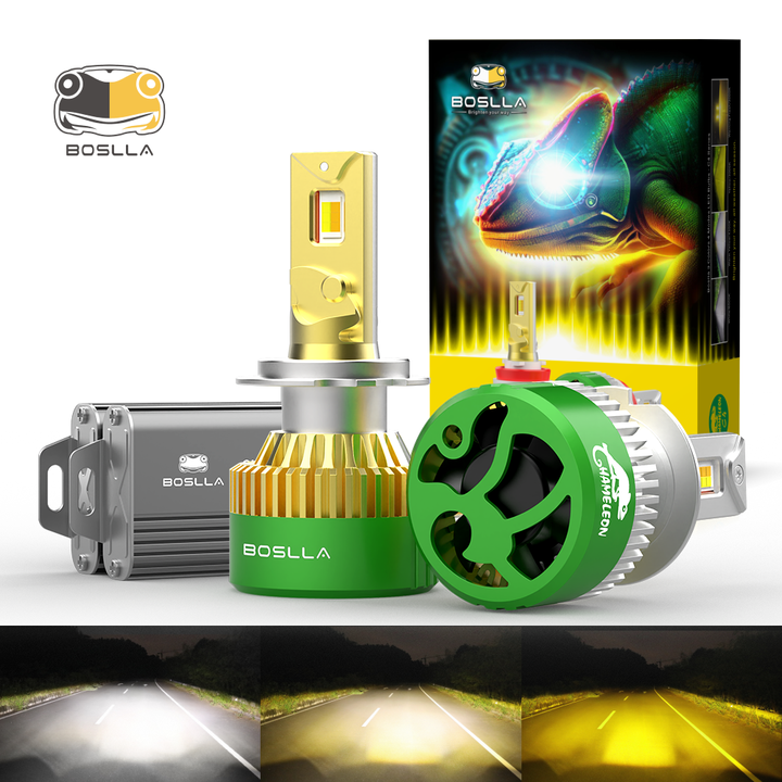BOSLLA Ampoule LED de phare de voiture 3 couleurs H7 H4 H11 9005 HB3 9006 Blanc Jaune, Feu de brouillard LED Canbus, Lampe avant automobile C4 Caméléon