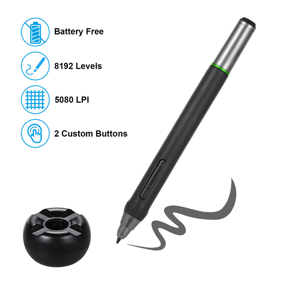 8192 niveaux de pression: Avec 8192 niveaux de sensibilité à la pression, le stylet permet un contrôle précis de l'épaisseur des lignes, améliorant le flux naturel et le détail dans votre œuvre d'art.