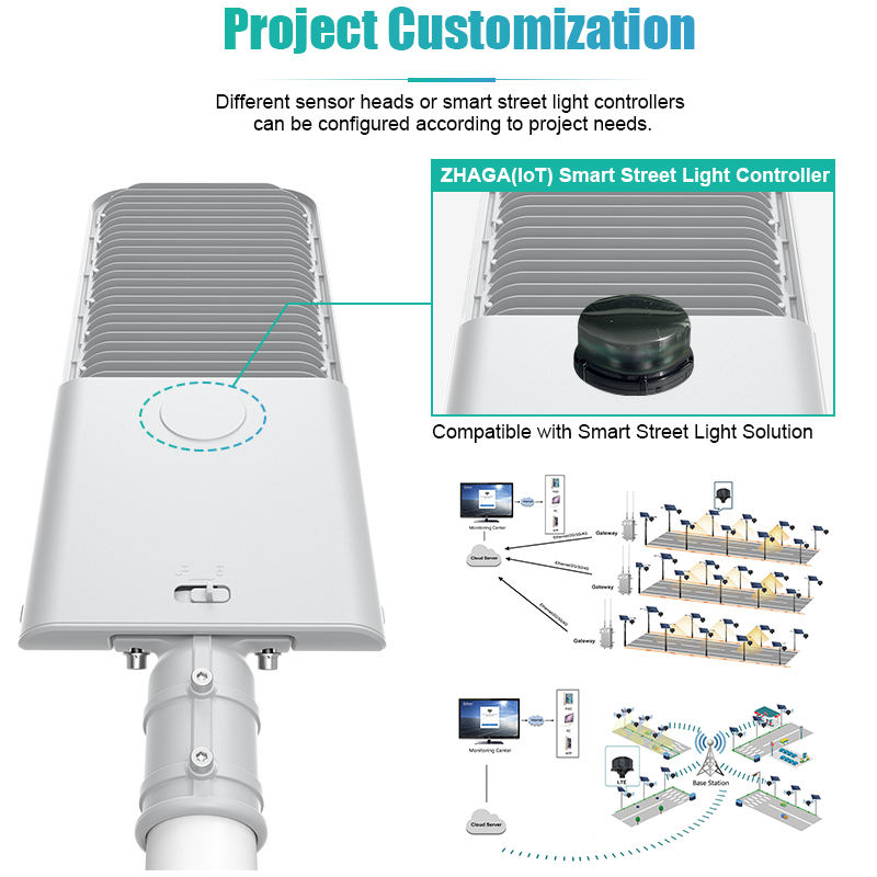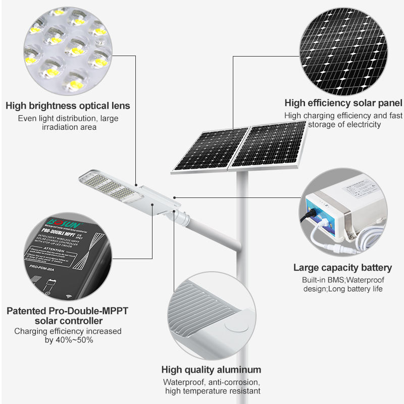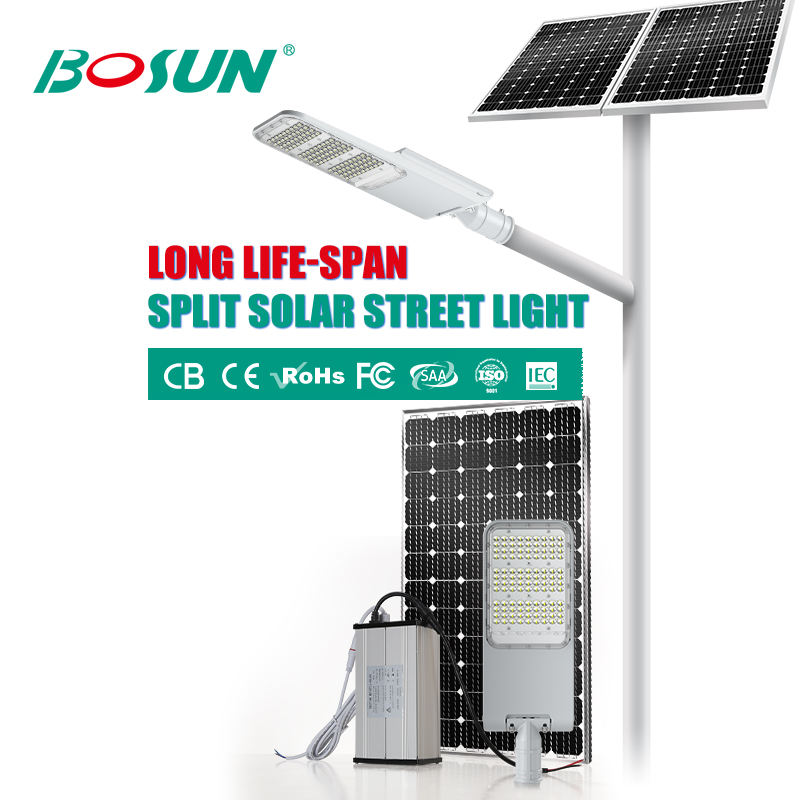 BOSUN 50W-200W Outdoor Solar Street Lighting Luminaire with IP65 Rating and Battery for Road Public Use