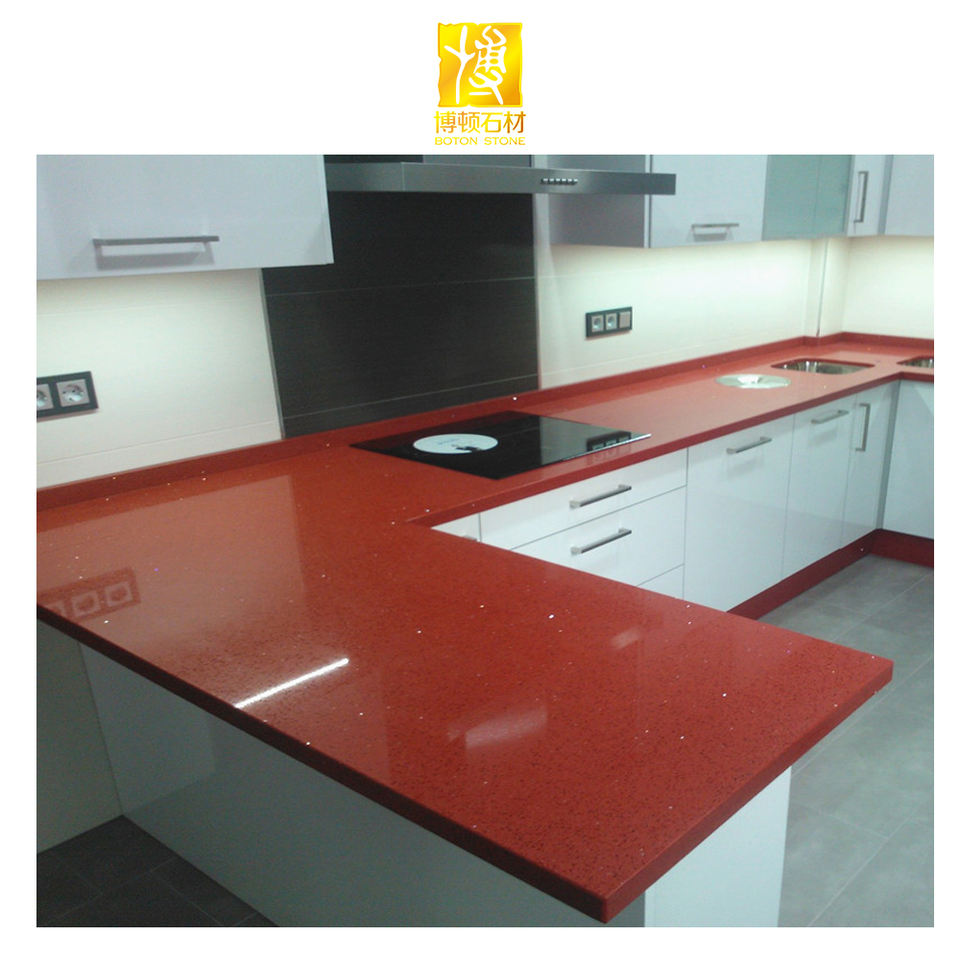 Dalles de sol en pierre artificielle de quartz rouge poli, brillant, de qualité supérieure, de la marque BOTON STONE