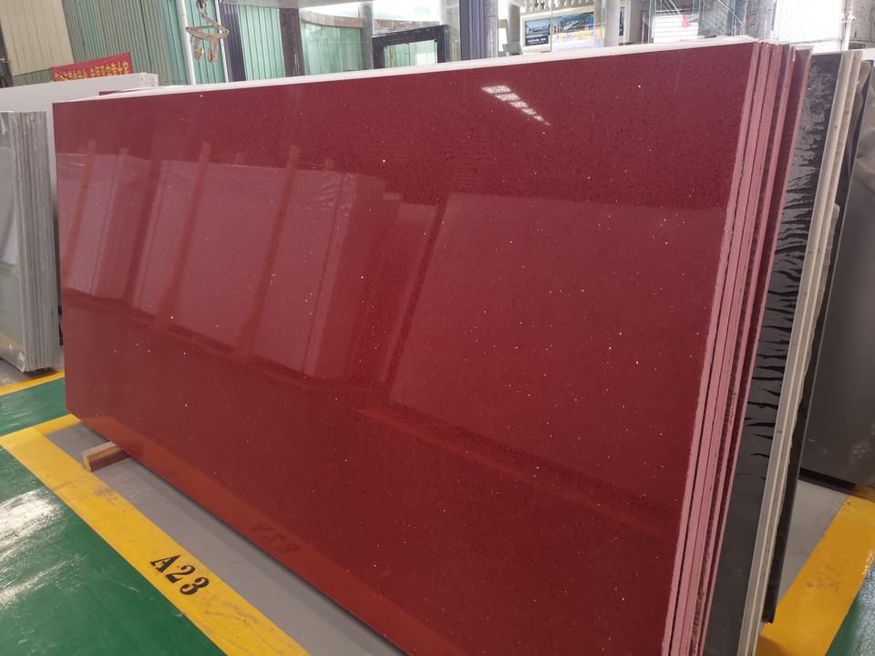 BOTON STONE Rouge Quartz Cristal Top Poli Étincelant Engineered Carrelage Dalle De Quartz Artificielle