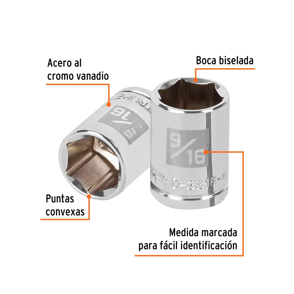 Boîte de 6 douilles à 6 points de 9/16 po, entraînement 3/8 po, TRUPER