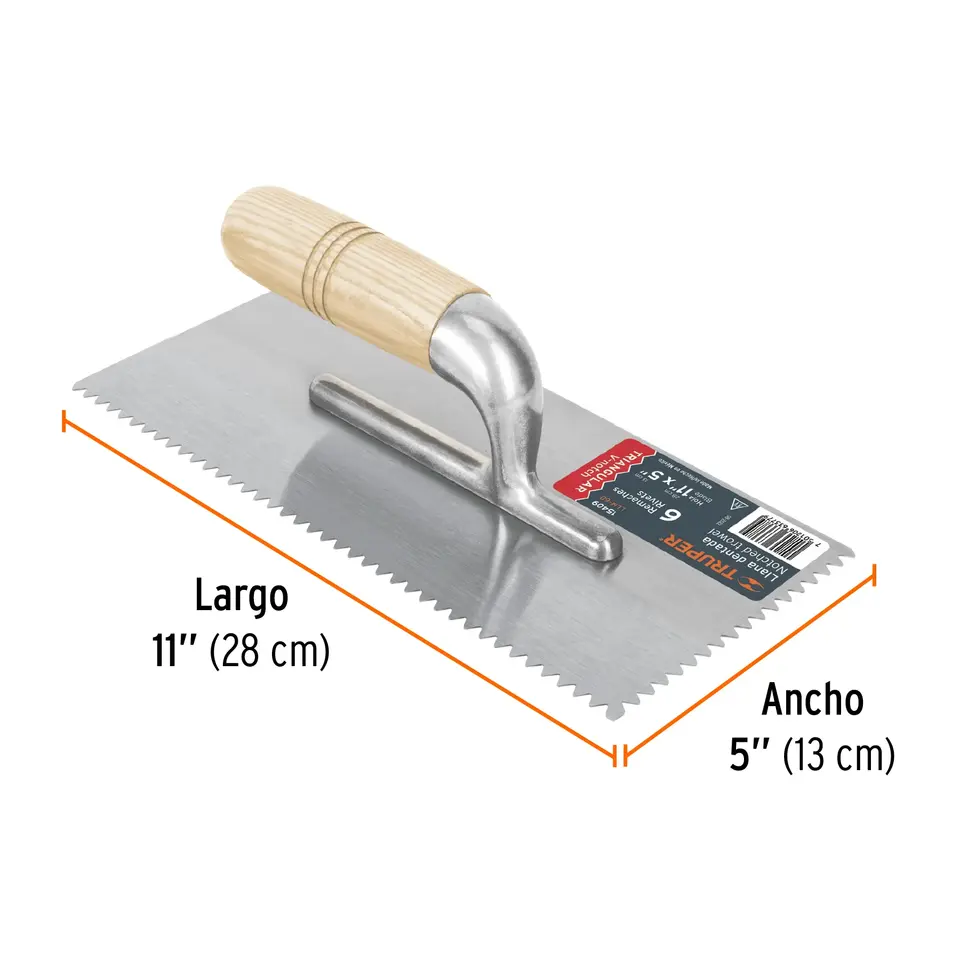 BOX 6 Truelle triangulaire dentelée de 11', 6 rivets, bois, TRUPER