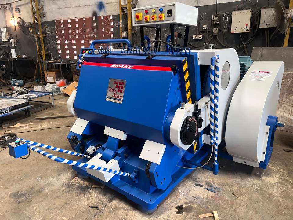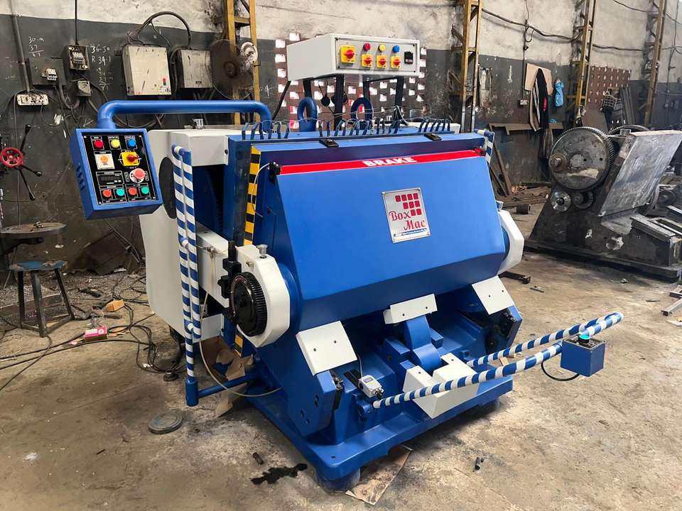Machine de découpe et de pliage semi-automatique électrique robuste BOXMAC avec lubrification centrale par huile et réglage de la protection de sécurité