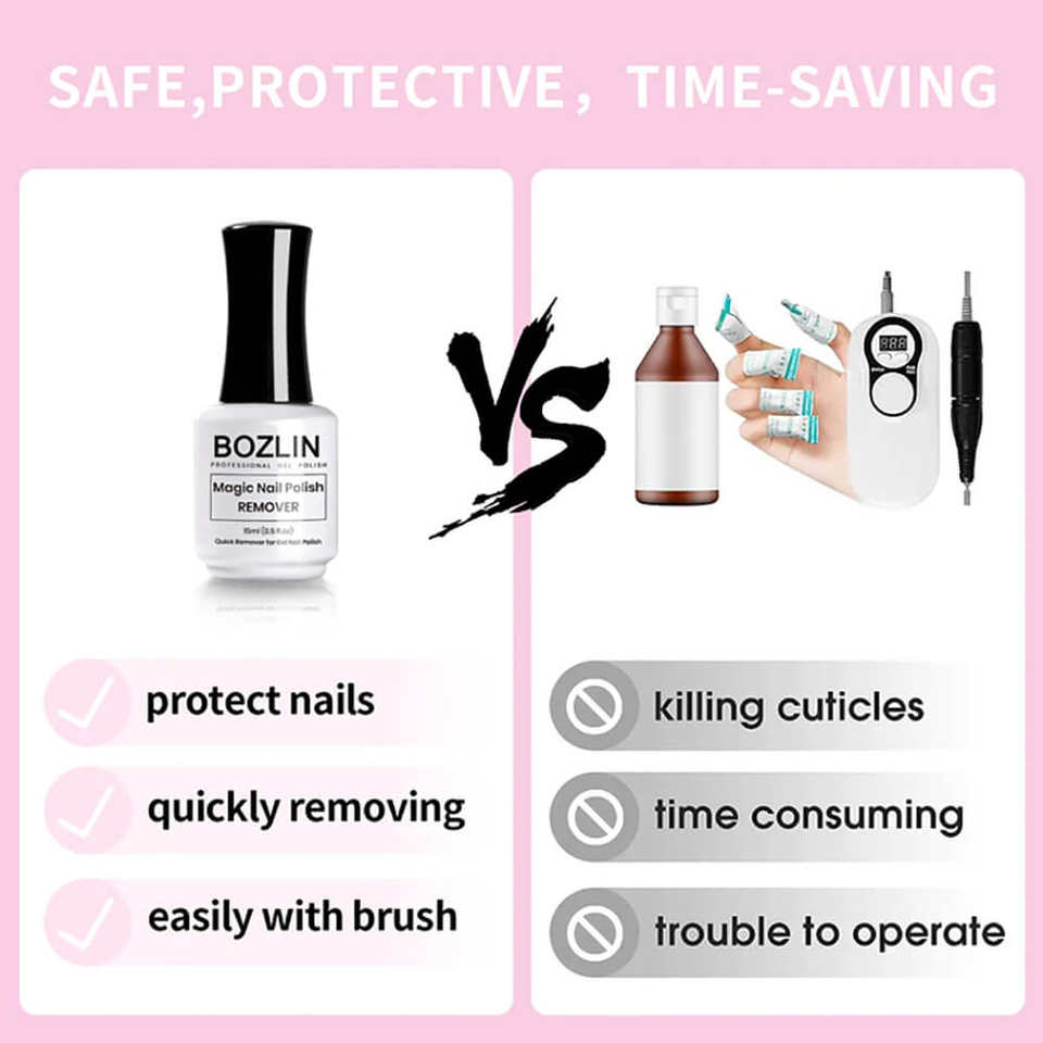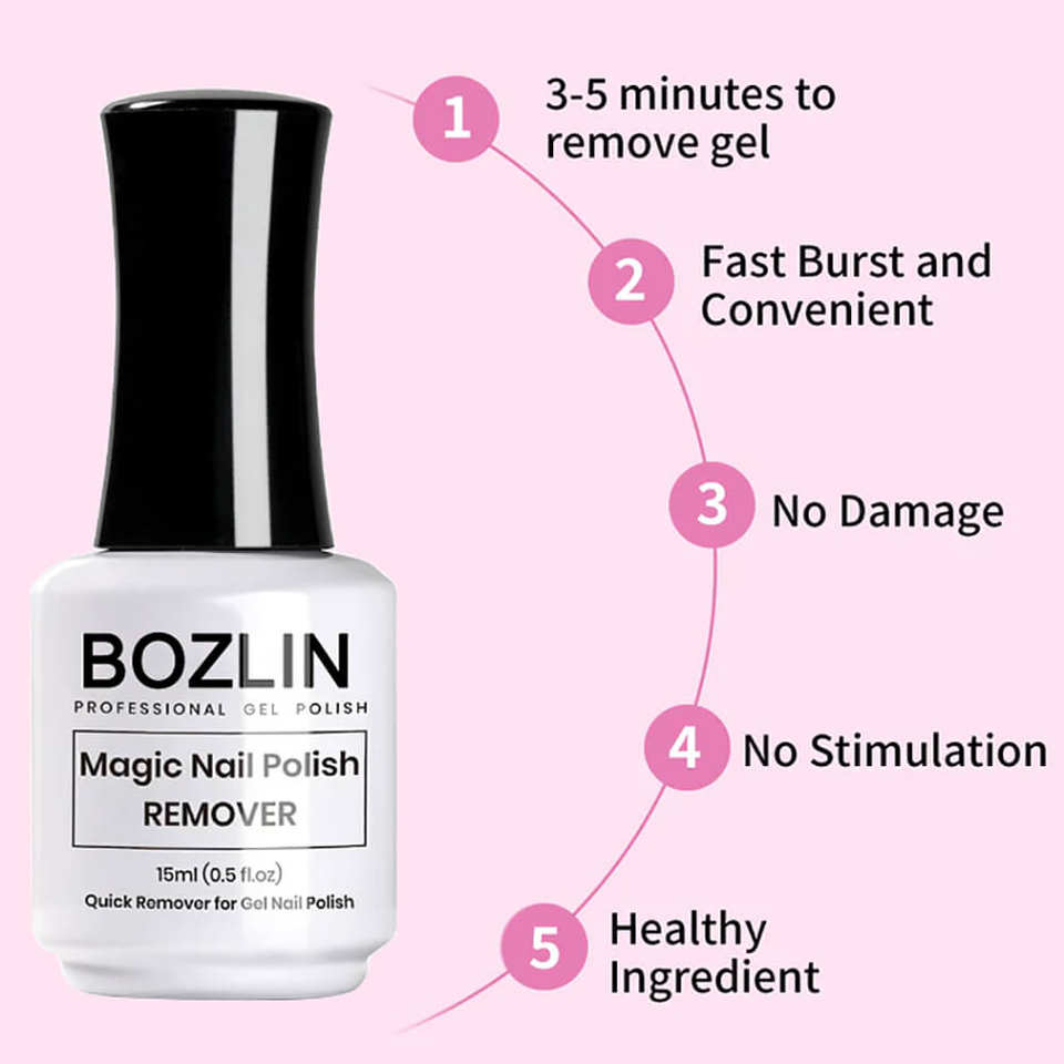 BOZLIN – Kit Dissolvant Magique pour Vernis à Ongles 15ml, Soin des Ongles Populaire et Inoffensif, Gel Dissolvant Magique OEM Marque Privée