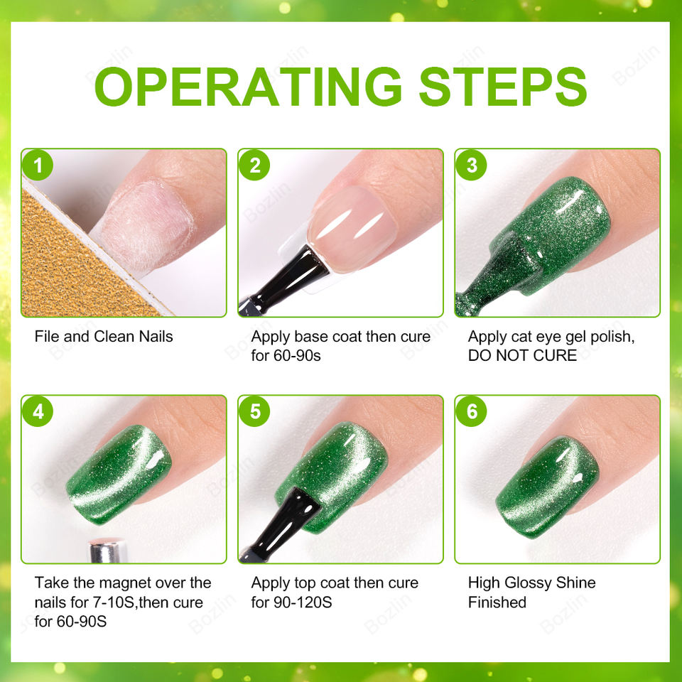 BOZLIN Spring Series Emerald Cateye UV Gel Polish TPO HEMA Free Cat Eye Gel Vernis À Ongles Personnalisé Votre Marque Magnétique Gel Polish